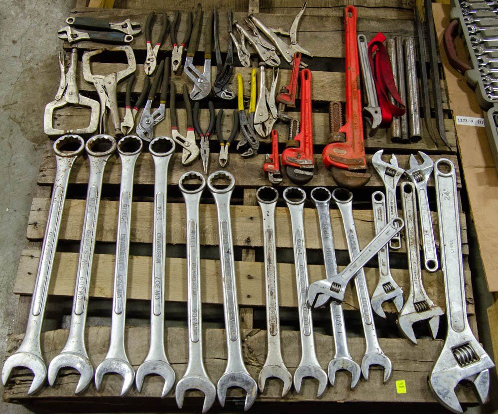 PALLET OF ASSORTED WRENCHES, PLIERS, VISE GRIPS &
