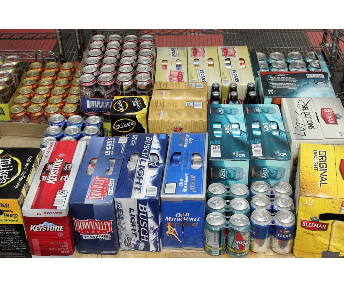 KEYSTONE , BUDLIGHT, MIKES HARD LEMONADE,RICKARDS,BOW VALLY,SLEEMAN,OLD MILWAKEE ETC.