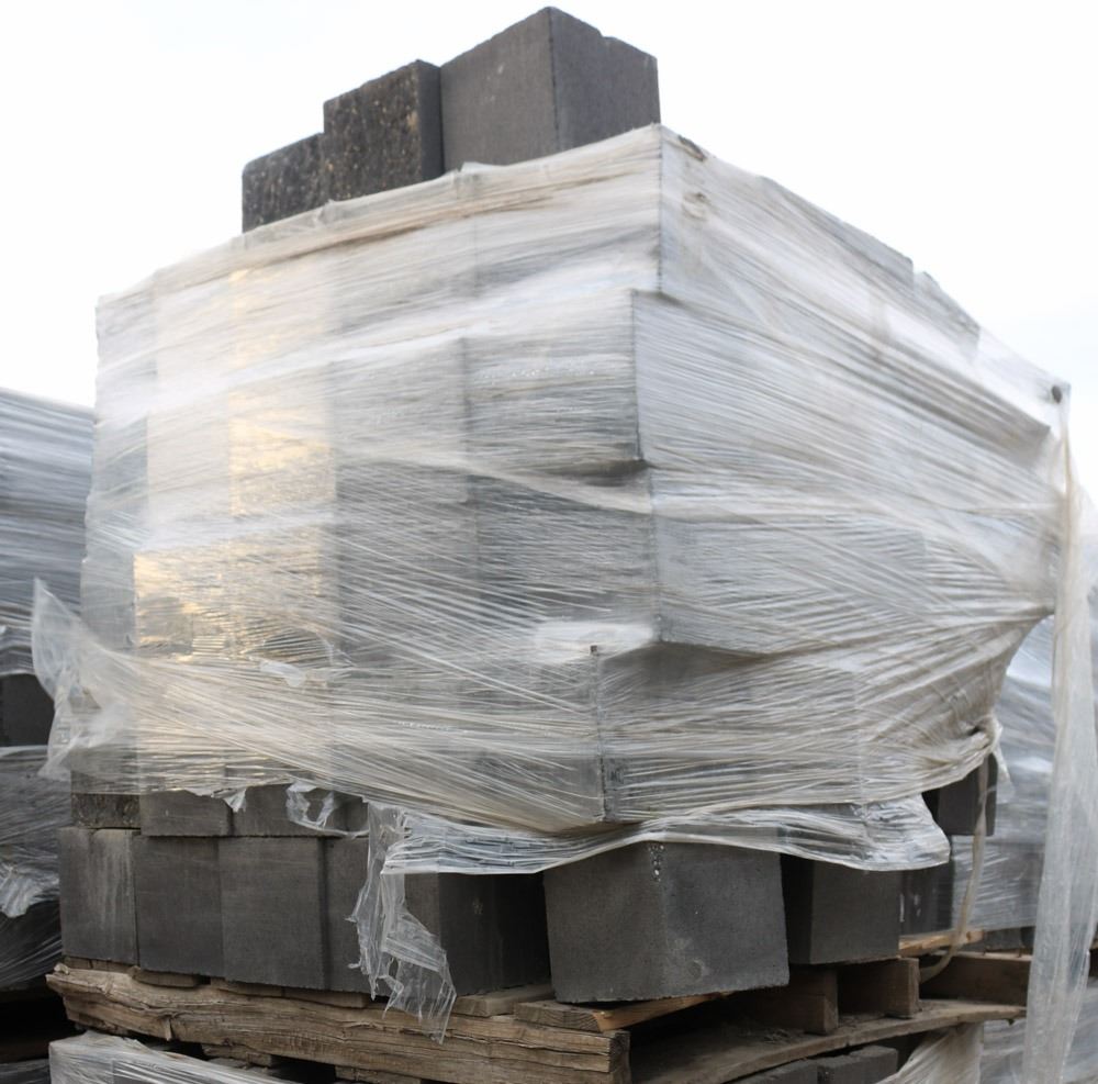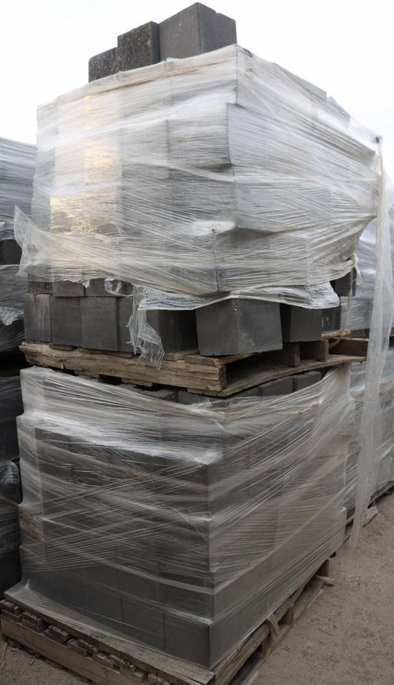 PALLET OF BLACK SPLIT FACED HALF CINDER BLOCK