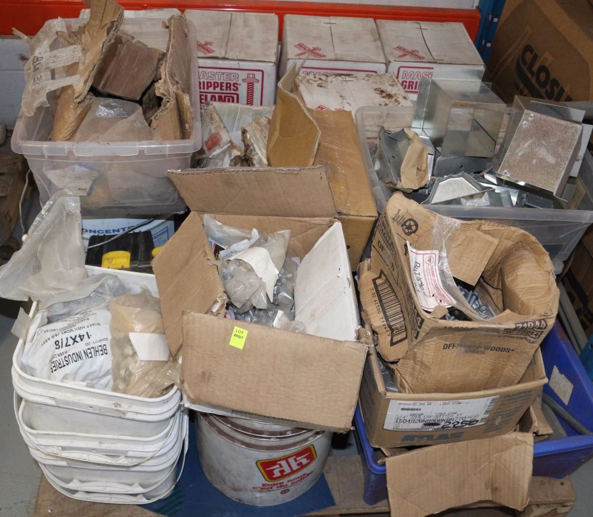 PALLET OF MISC BOLTS, MASTER GRIPPERS, ETC.