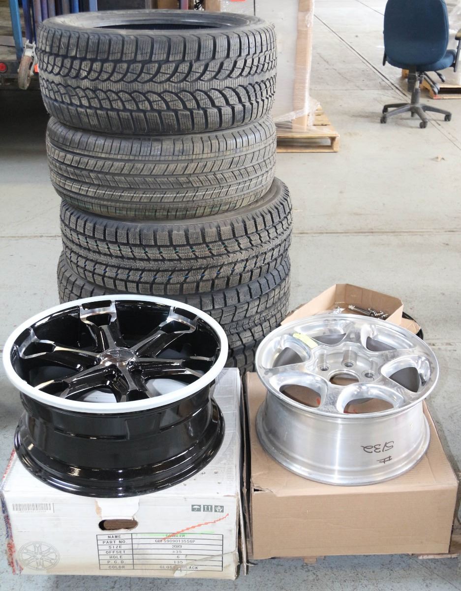 PALLET OF NEW TIRES, RIMS & WHEEL ACCESSORIES