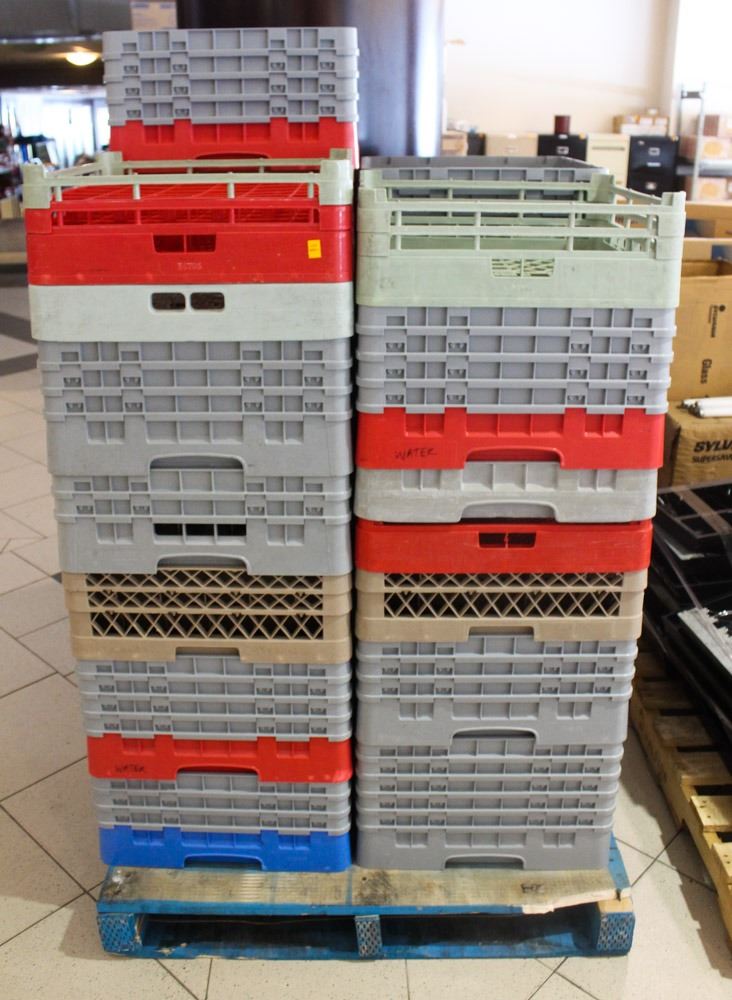 PALLET OF PLASTIC COMMERCIAL DISHWASHER RACKS