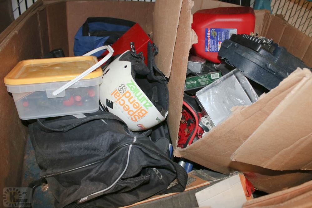 HOCKEY GEAR, SNO BLADES, HELMET, JERRY CAN, TOOL BOXES WITH CONTENTS, AND MORE