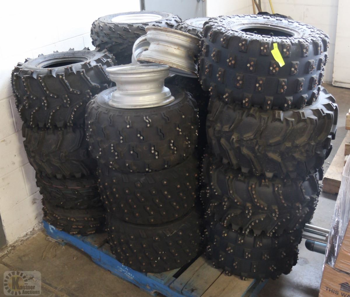 PALLET OF STUDDED QUAD TIRES AND RIMS