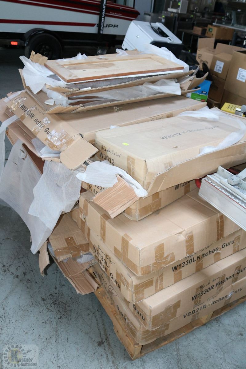 PALLET OF UNBUILT WOOD CABINET BOXES