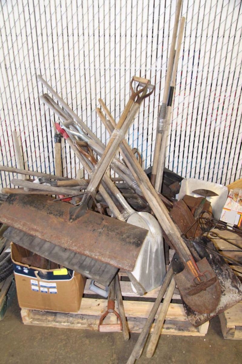 PALLET OF VINTAGE YARD TOOLS