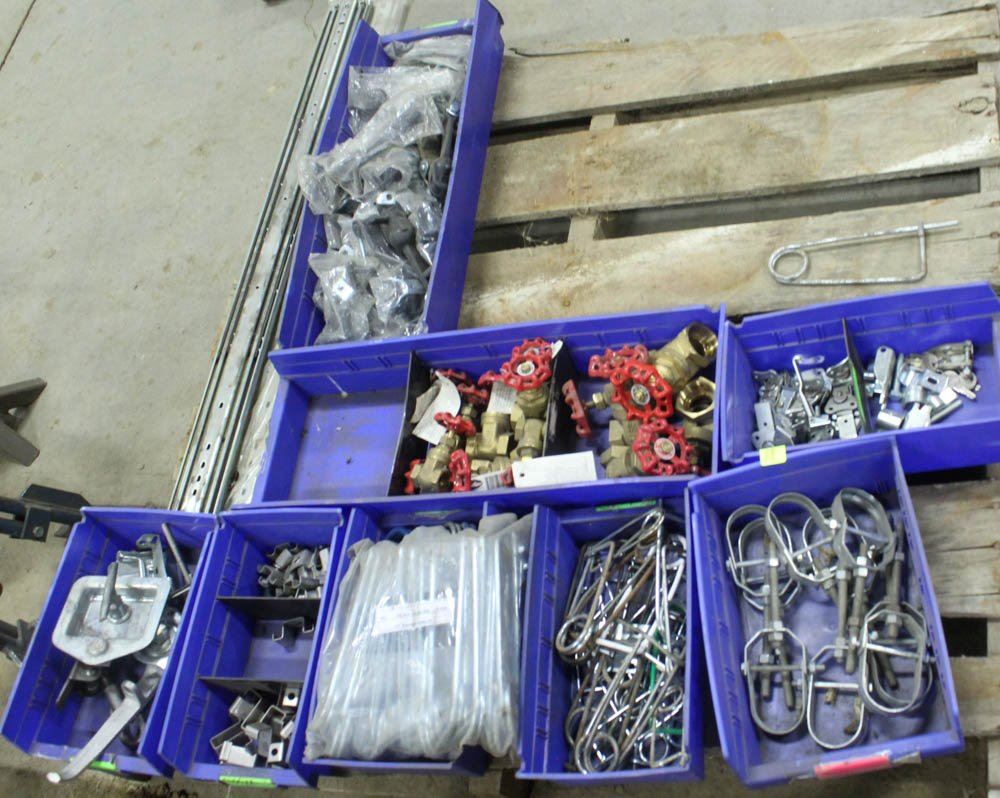 PALLET W/ ASSORTED VALVES, INDUSTRIAL SAFETY PINS
