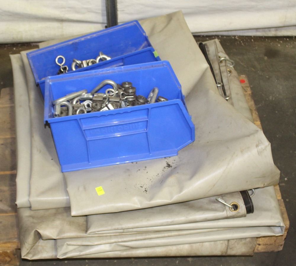 PALLET WITH 2 TARPS, CONNECTING LINKS AND ROLLERS