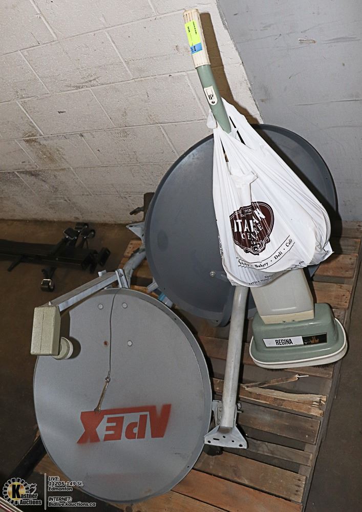 PALLET WITH SATTELITE DISHES AND FLOOR CLEANER