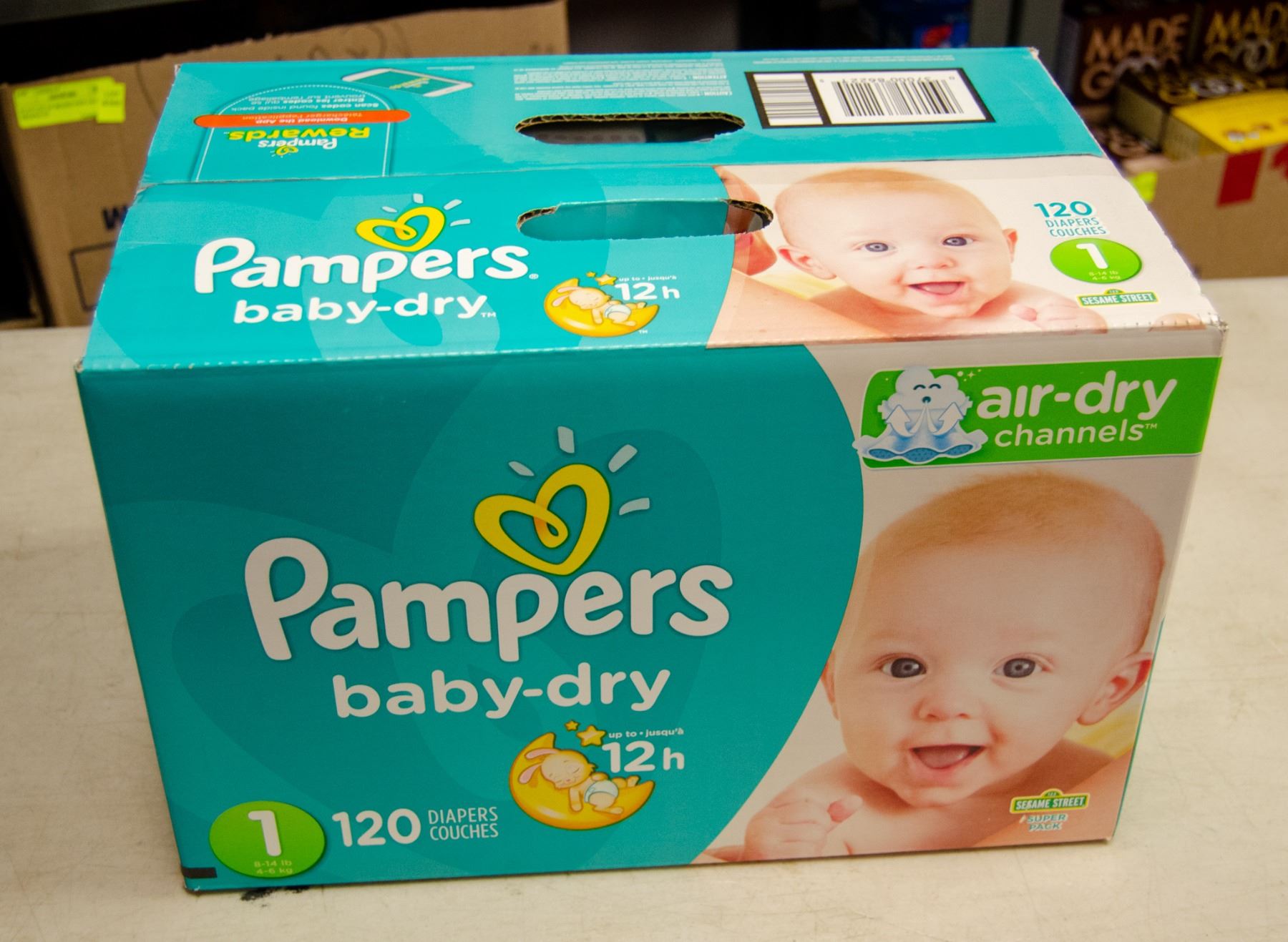 PAMPERS BABY-DRY SUPER PACK CASE OF 120 DIAPERS SESAME STREET THEME. SIZE 1 8-14LBS