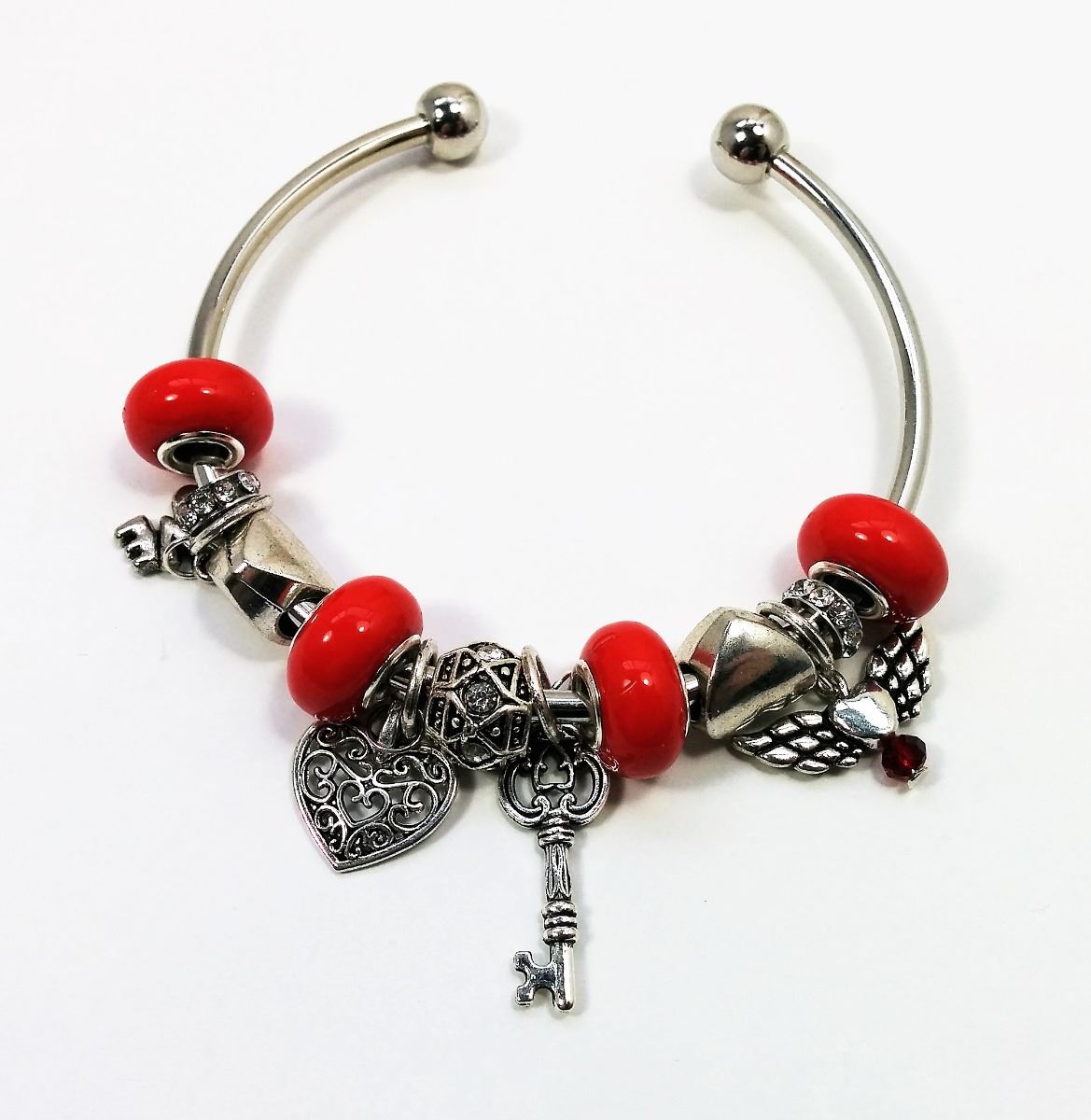 VALENTINE THEME RED MURANO GLASS BEADS TIBETAN SILVER CHARMS & CRYSTAL ACCENTS