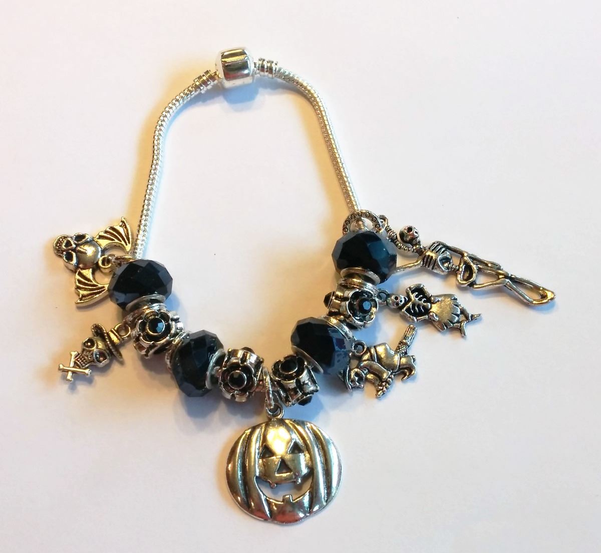 WITH BLACK CRYSTAL BEADS & TIBETAN SILVER CHARMS