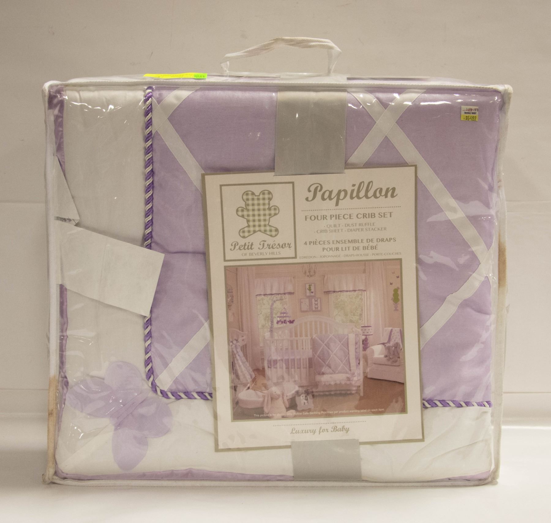 PAPILLON QUILT, DUST RUFFLE,CRIB SHEET,& DIAPER