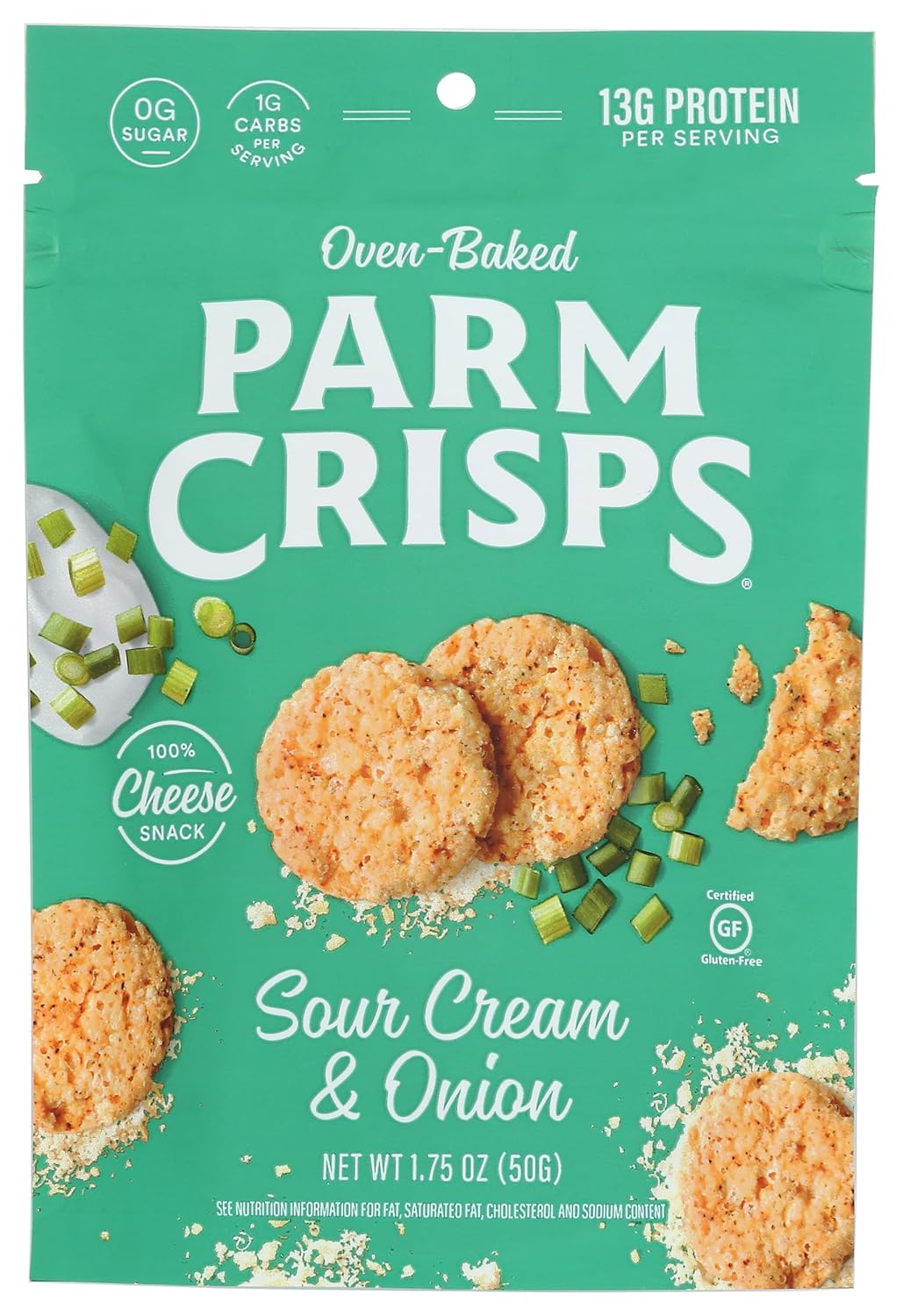 PARMCRISPS® SOUR CREAM & ONION DELIVER THE CLASSIC SNACK FLAVORS OF TANGY SOUR CREAM AND SAVORY ONION IN A 100% PARMESAN CHEESE CRISP. IT’S THE CRUNCHY TASTE EXPERIENCE YOU CRAVE WITHOUT THE GUILT. BITE-SIZED AND READY TO DIP OR SIMPLY CRUNCH. | Category: Food Items
