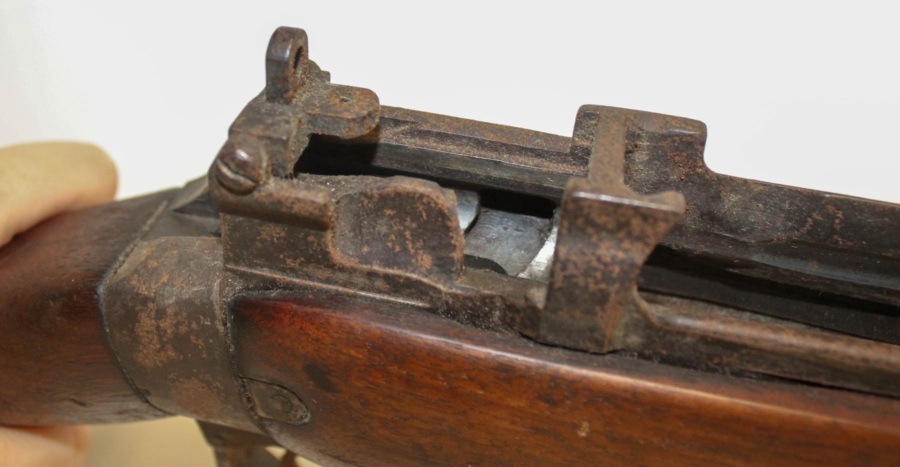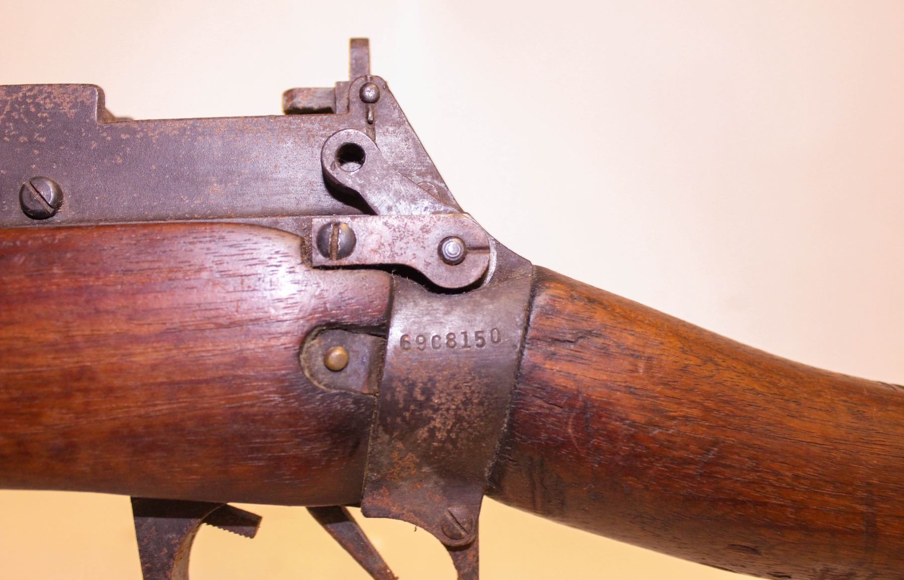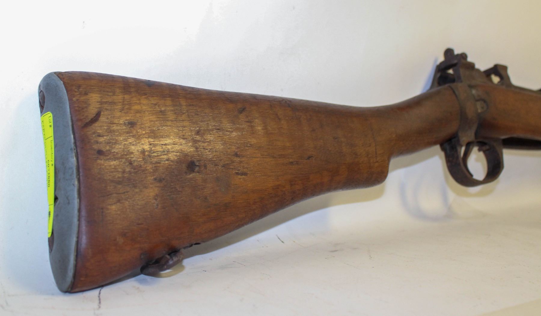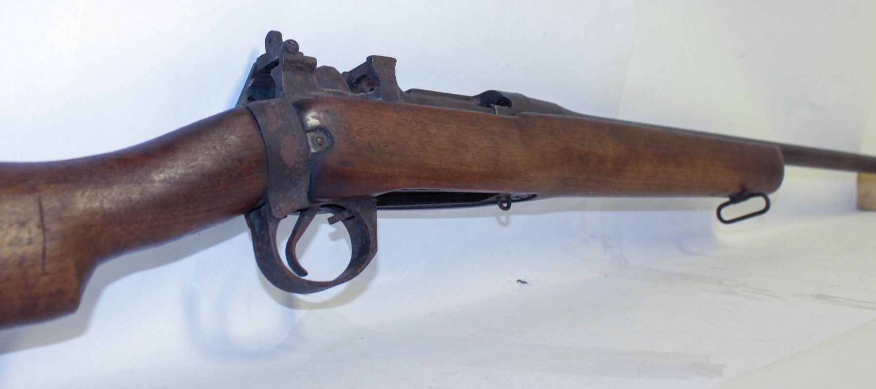 BARREL HAS RUST LOCATED ALL OVER INCLUDING THE TRIGGER, RECEIVER & SIGHTS, WOOD STOCK IS IN FAIR CONDITION, MISSING MULTIPLE PARTS INCLUDING BOLT, MAGAZINE, & MORE
