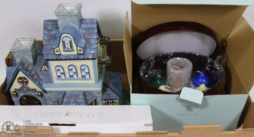 WITH CANDLES & OLDE WORLD VILLAGE W/FIFTH AVENUE 4 SQUARE GLASS VOTIVES SET
