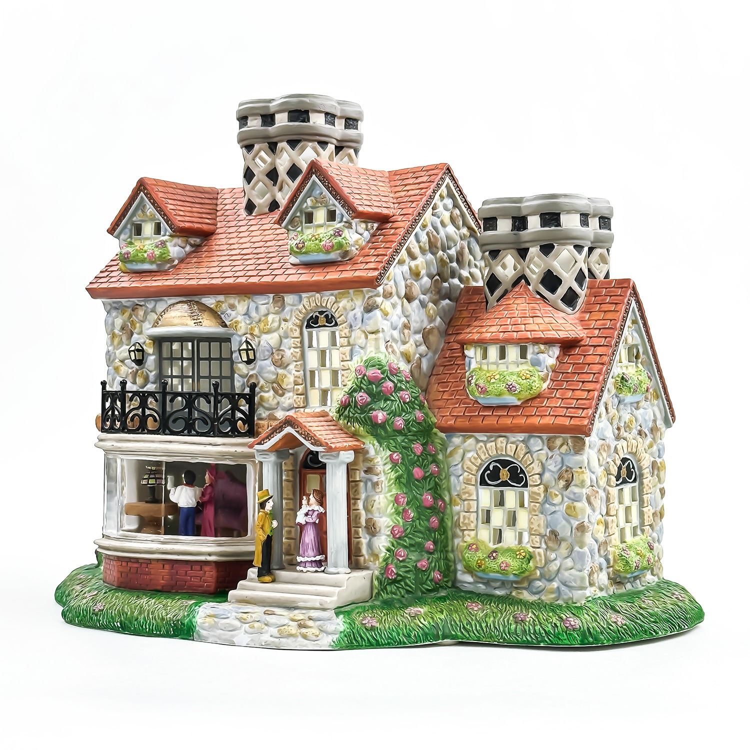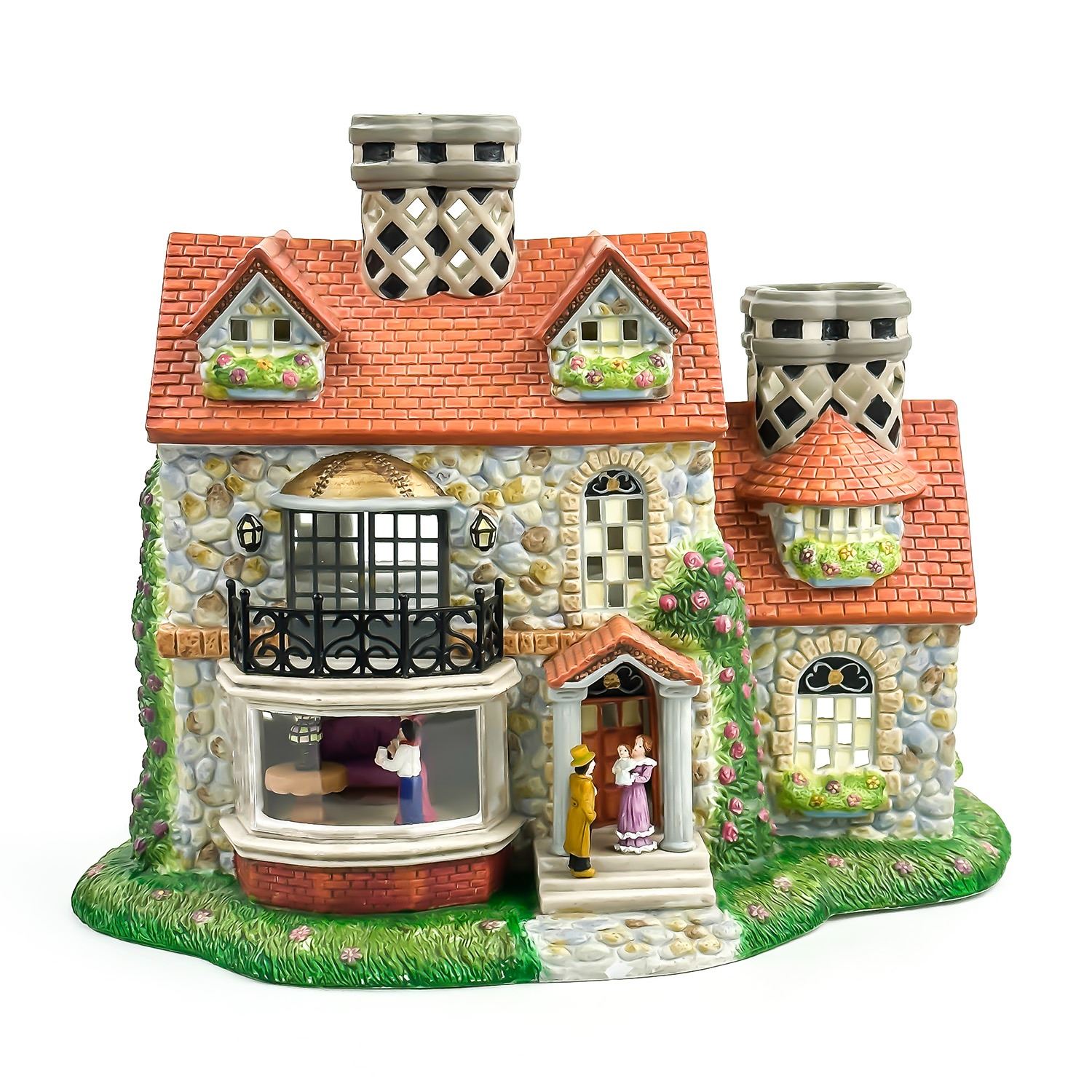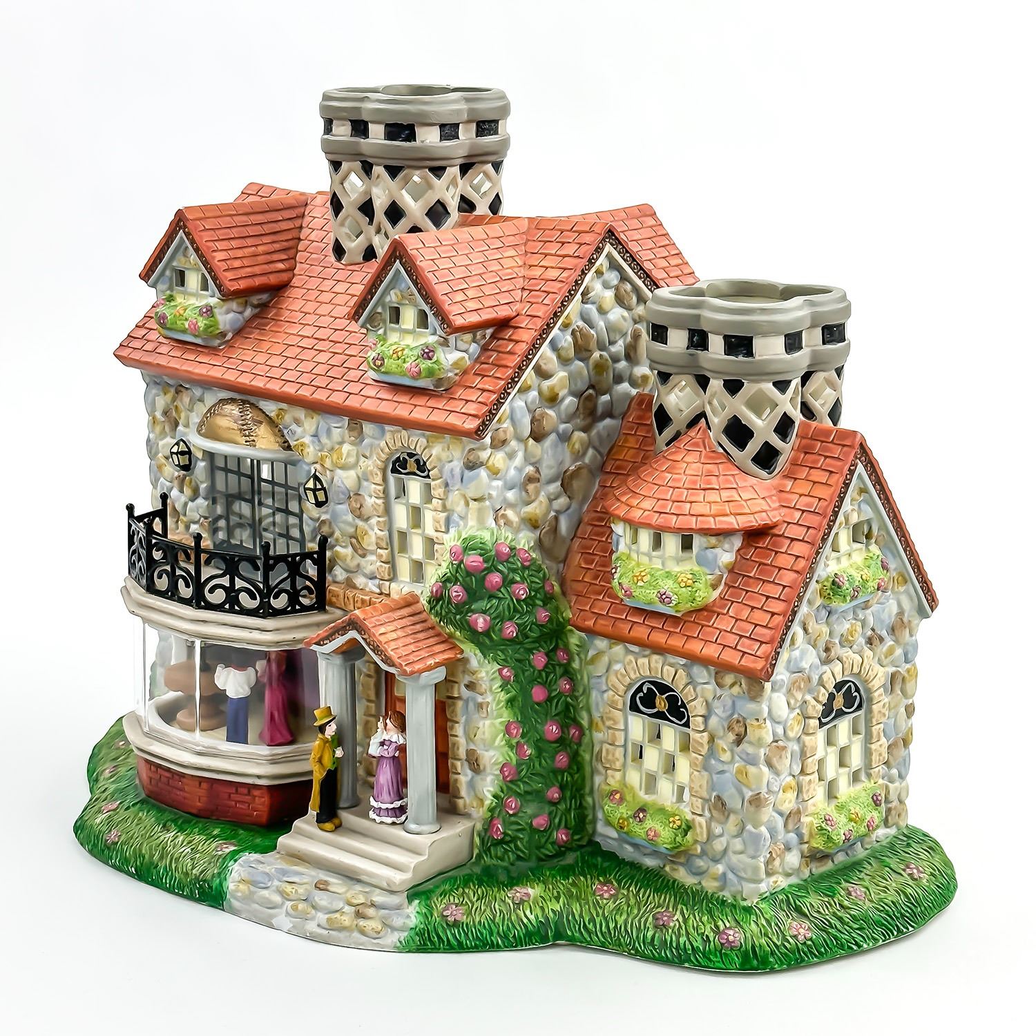#8924 - PORCELAIN OLDE WORLD VILLAGE FOR TEA LIGHT CANDLES - TWO OPENINGS IN THE BACK TO PLACE THE TEA LIGHT CANDLES. NO BOX. MEASURES: 10.5” (26.6 CM) WIDE BY 7.125” (18 CM) DEEP AND 8.5”(21.5 CM) HIGH***ITEM(S) LOCATED IN LETHBRIDGE ALBERTA. FREE TRANSPORT TO EDMONTON OFFICE AVAILABLE FOR THIS AUCTION. WORLDWIDE SHIPPING IS AVAILABLE FOR ALL ITEMS