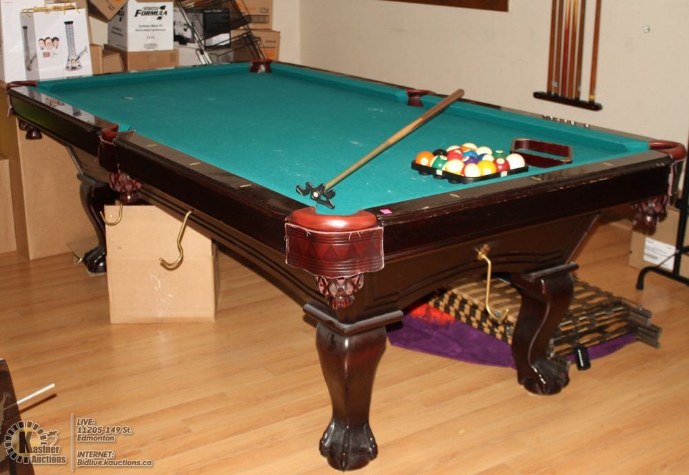 BALLS, RACK, EXTENSION CUE AND MOLSON CANADIAN HANGING POOL LIGHT. 56" X 96". REMOVAL IS THE RESPONSIBILITY OF THE BUYER