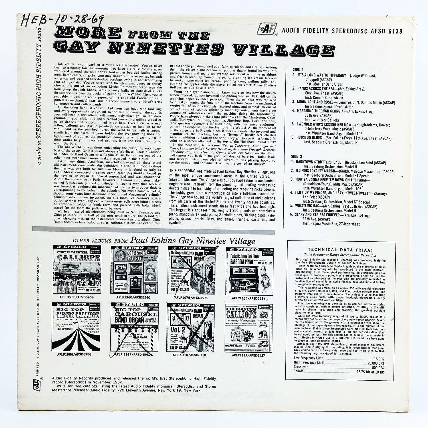 #8480 - VINYL LP RECORD ALBUM, CLASSICAL, FOLK, WORLD & COUNTRY. AUDIO FIDELITY AFSD 6138