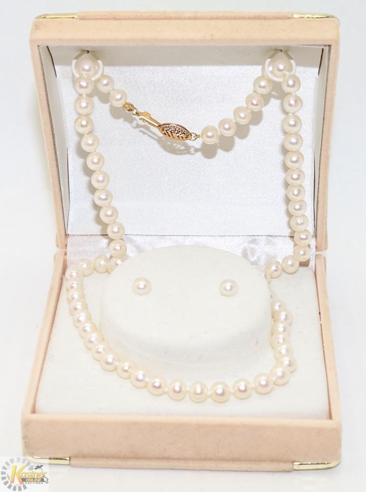 PEARL NECKLACE AND EARRINGS WITH 14K CLASP