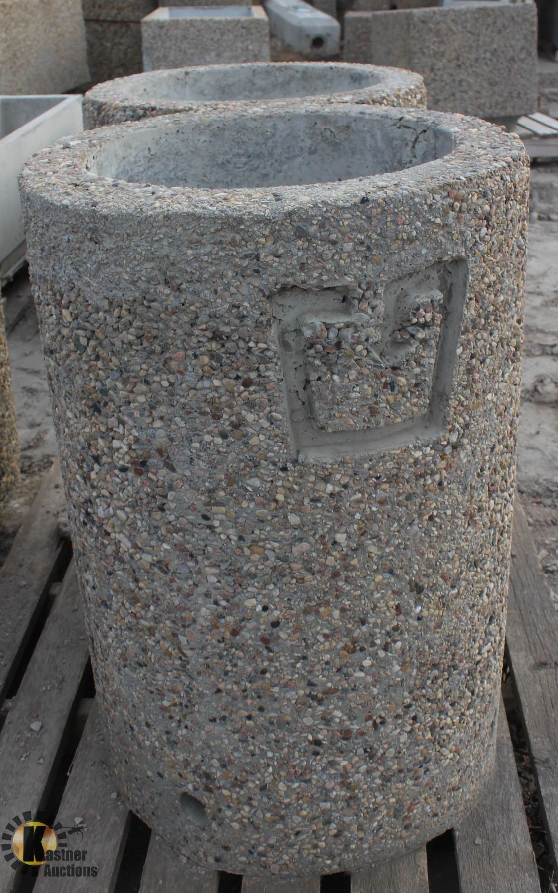 PEBBLED CONCRETE ROUND GARBAGE CANS