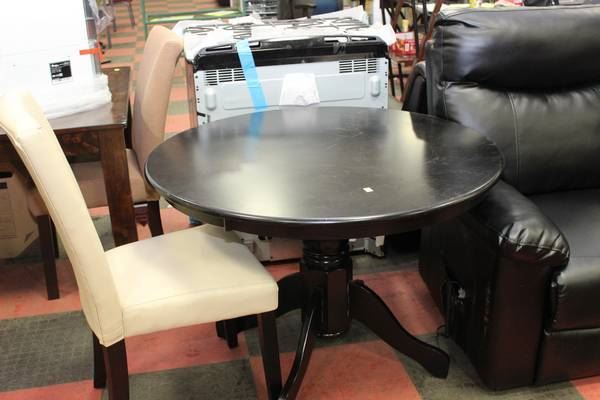 PEDESTAL BASE ROUND TABLE W ONE WHITE CHAIR