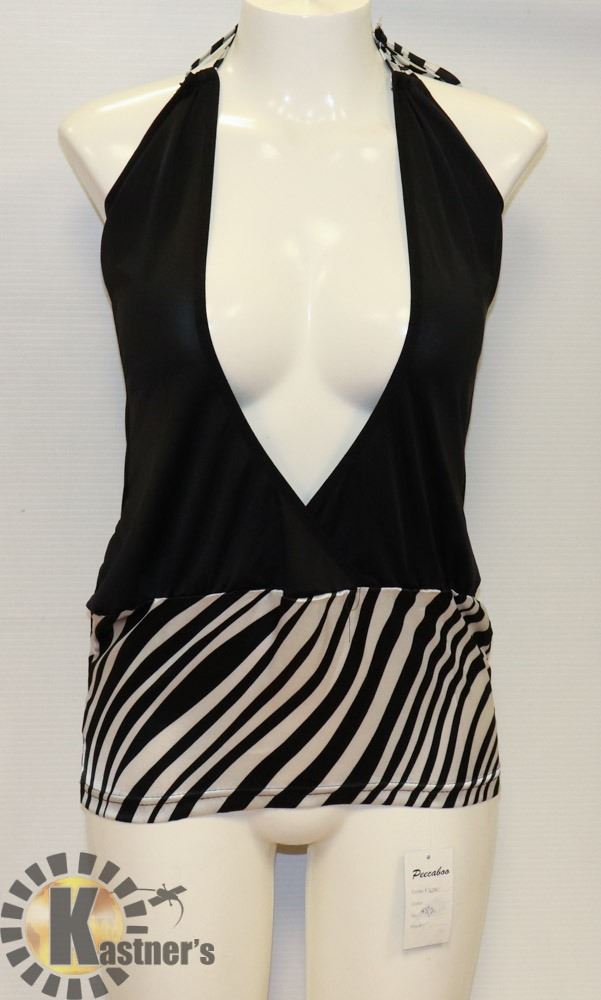 PEECABOO 1PC WOMENS BLACK & PINSTRIPE HALTER