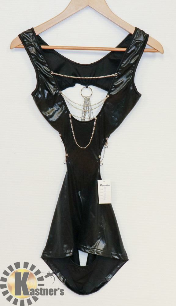 CHAIN ACCENT OPEN SIDE & BACK ADULT COCKTAIL DRESS. SIZE 4-6