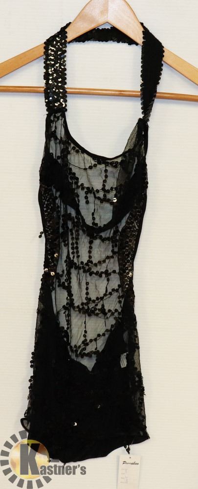 PEECABOO 1PC WOMENS BLACK SHEER/ EMBELLISHED HALTER
