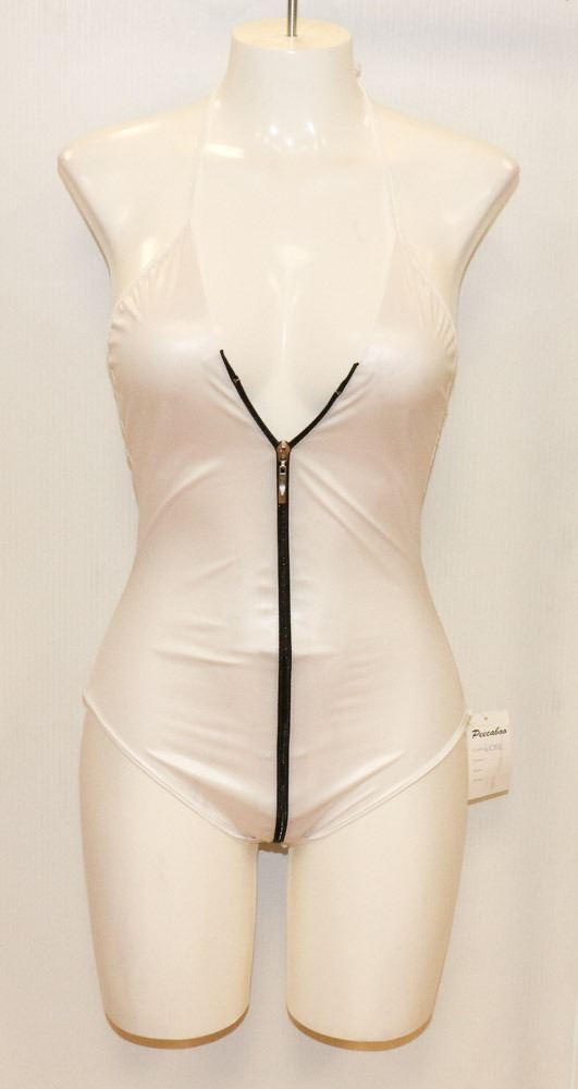 PEECABOO 1PC WOMENS WHITE W/ BLACK ZIP UP, HALTER