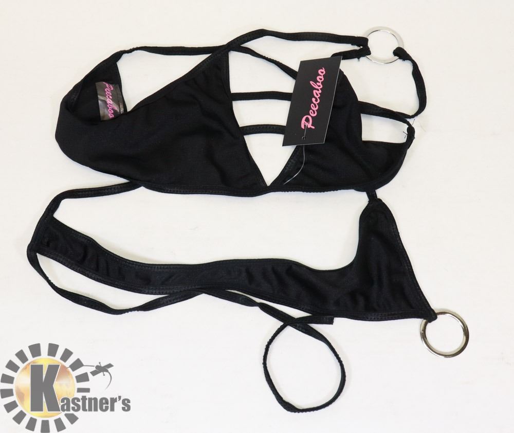 PEECABOO 2PC WOMENS BLACK W/ SILVER HOOPS ADULT