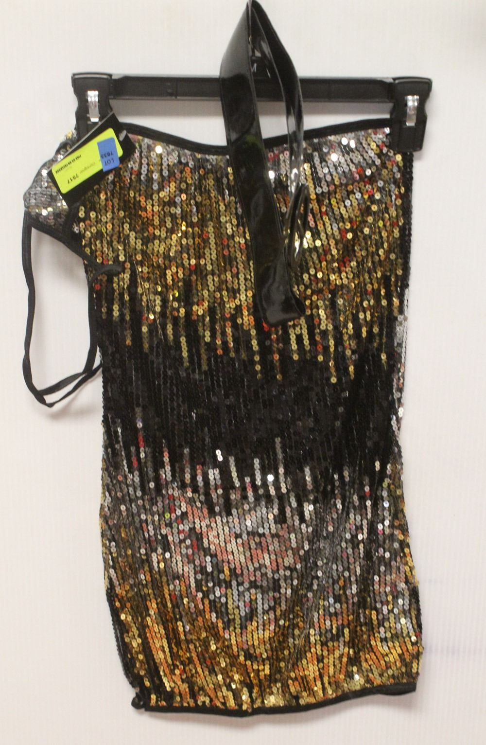 STRAPLESS ADULT COCKTAIL DRESS W/ BELT & THONG. SIZE 6-7