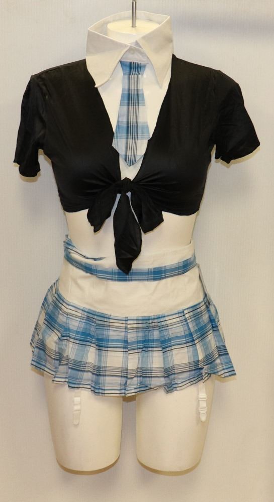 SCHOOL GIRL THEMED OUTFIT W/ NECK TIE. SIZE UNKNOWN