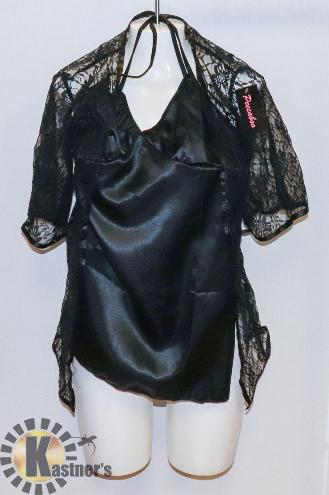 PEECABOO 4PC WOMENS BLACK LACE & SATIN STYLE