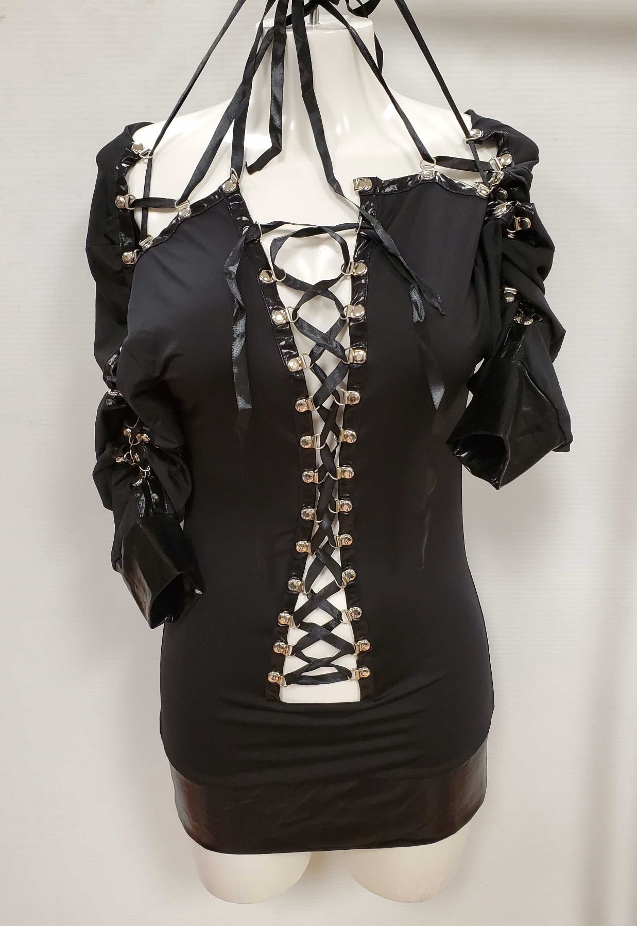 PEEKABOO 2PC WOMENS BLACK LONG SLEEVE ADULT OUTFIT