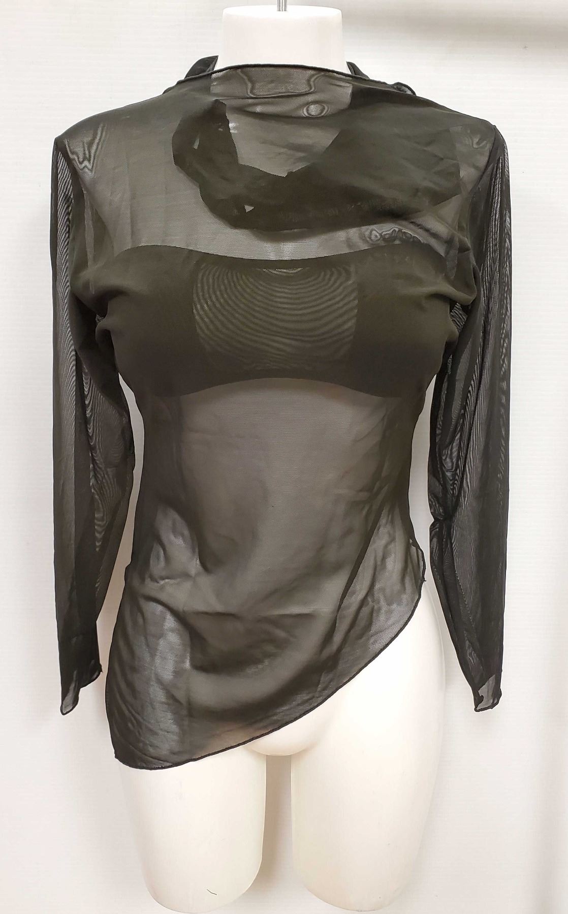 PEEKABOO 3PC WOMENS BLACK SHEER LONG SLEEVE SHIRT,