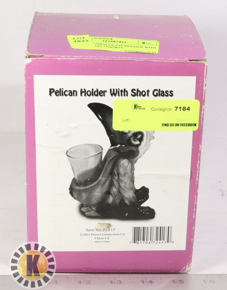 PELICAN SHOT GLASS HOLDER WITH SHOT GLASS **NEW**
