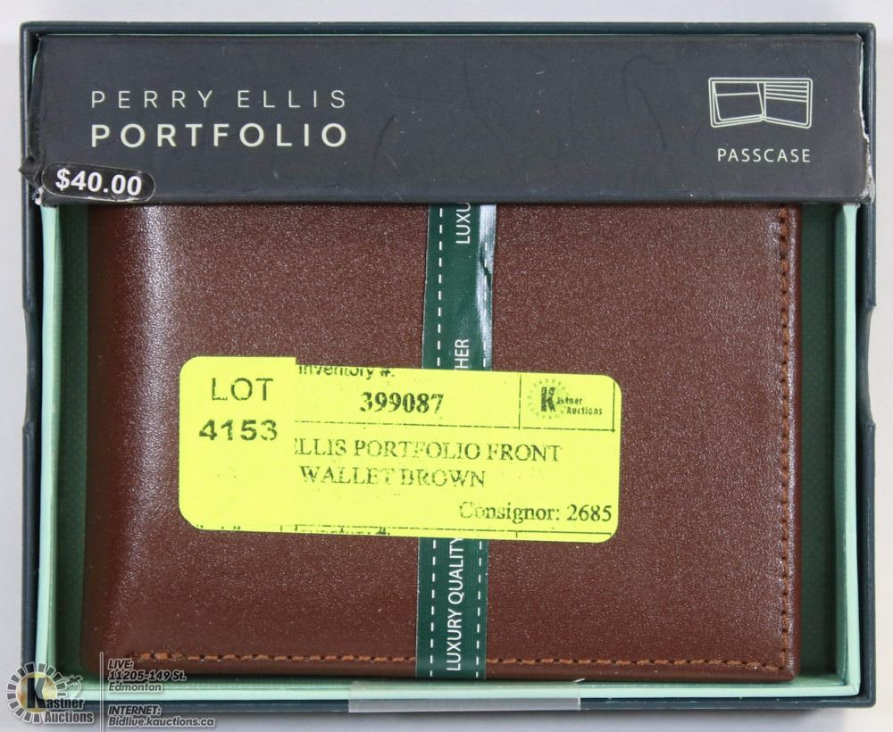 PERRY ELLIS PORTFOLIO FRONT POCKET WALLET BROWN