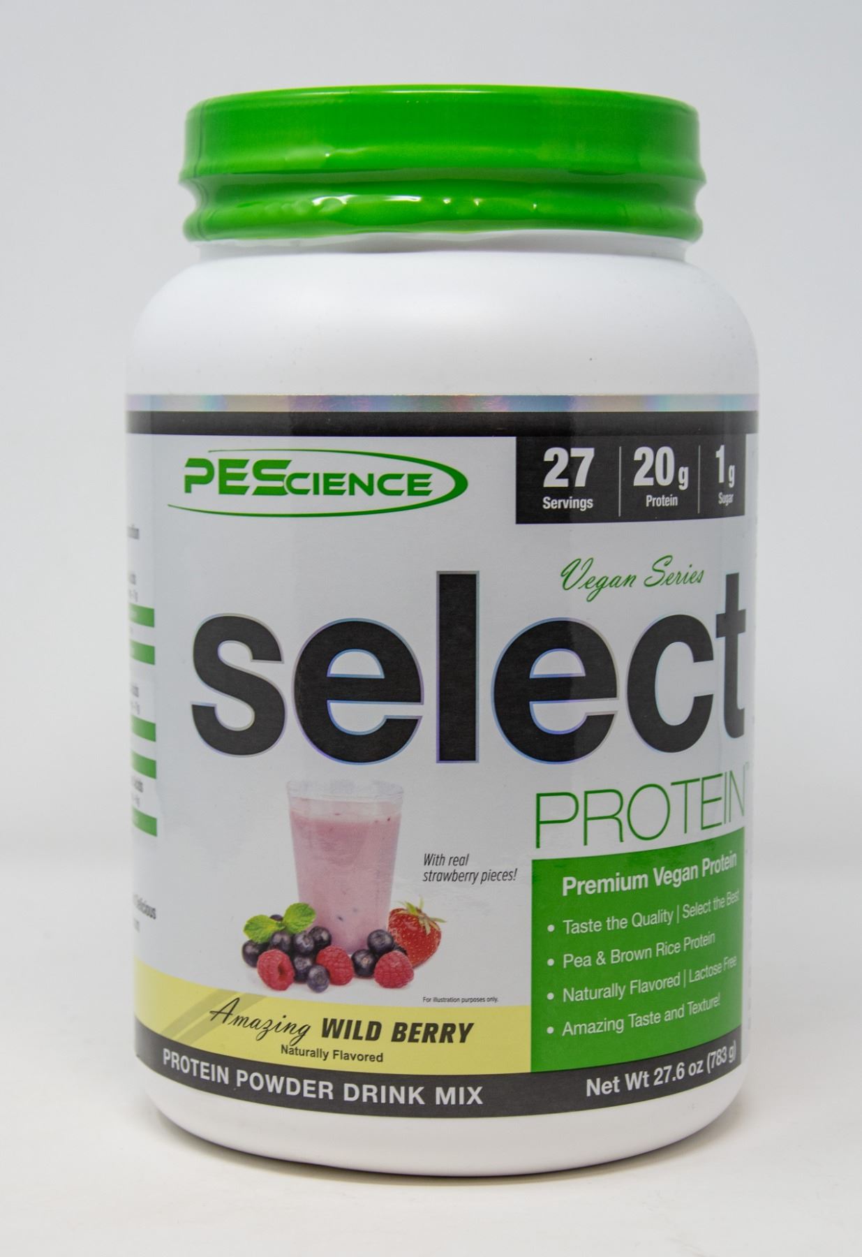 AMAZING WILDBERRY FLAVOUR. PREMIUM VEGAN PROTEIN. 783G. 27 SERVINGS. 20G OF PROTEIN PER SERVING. EXP 01/2021