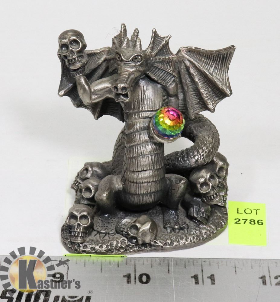 PEWTER DRAGON  THE DRAGON OF MYSTERY  W/ CRYSTAL