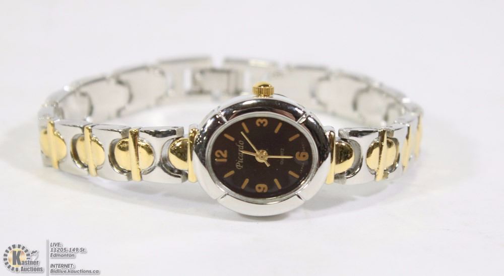 PICADAR QUARTZ TWO TONE BLACK DIAL LADIES WATCH