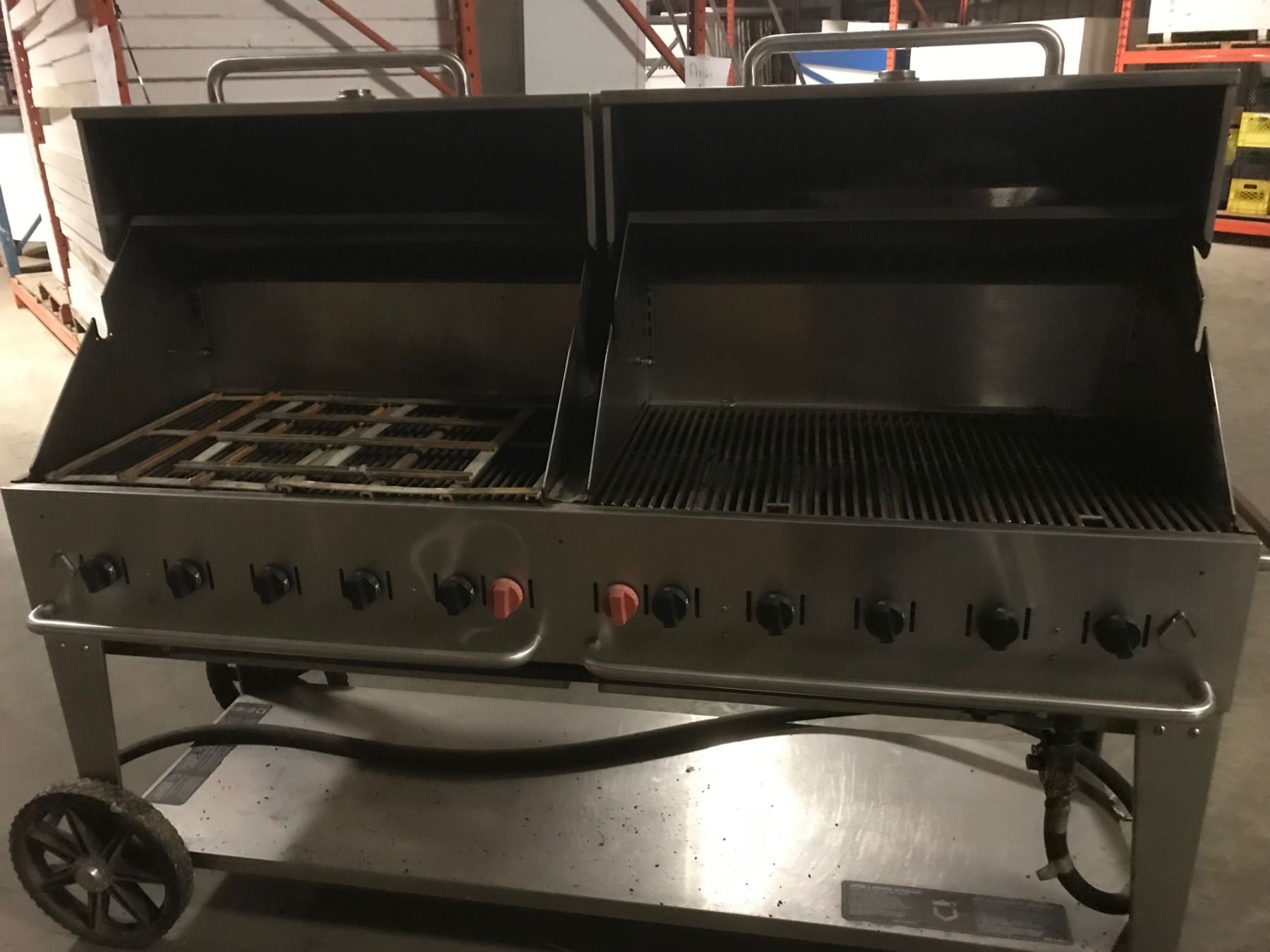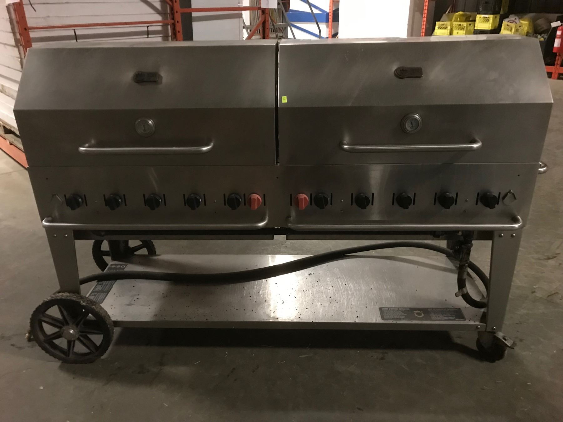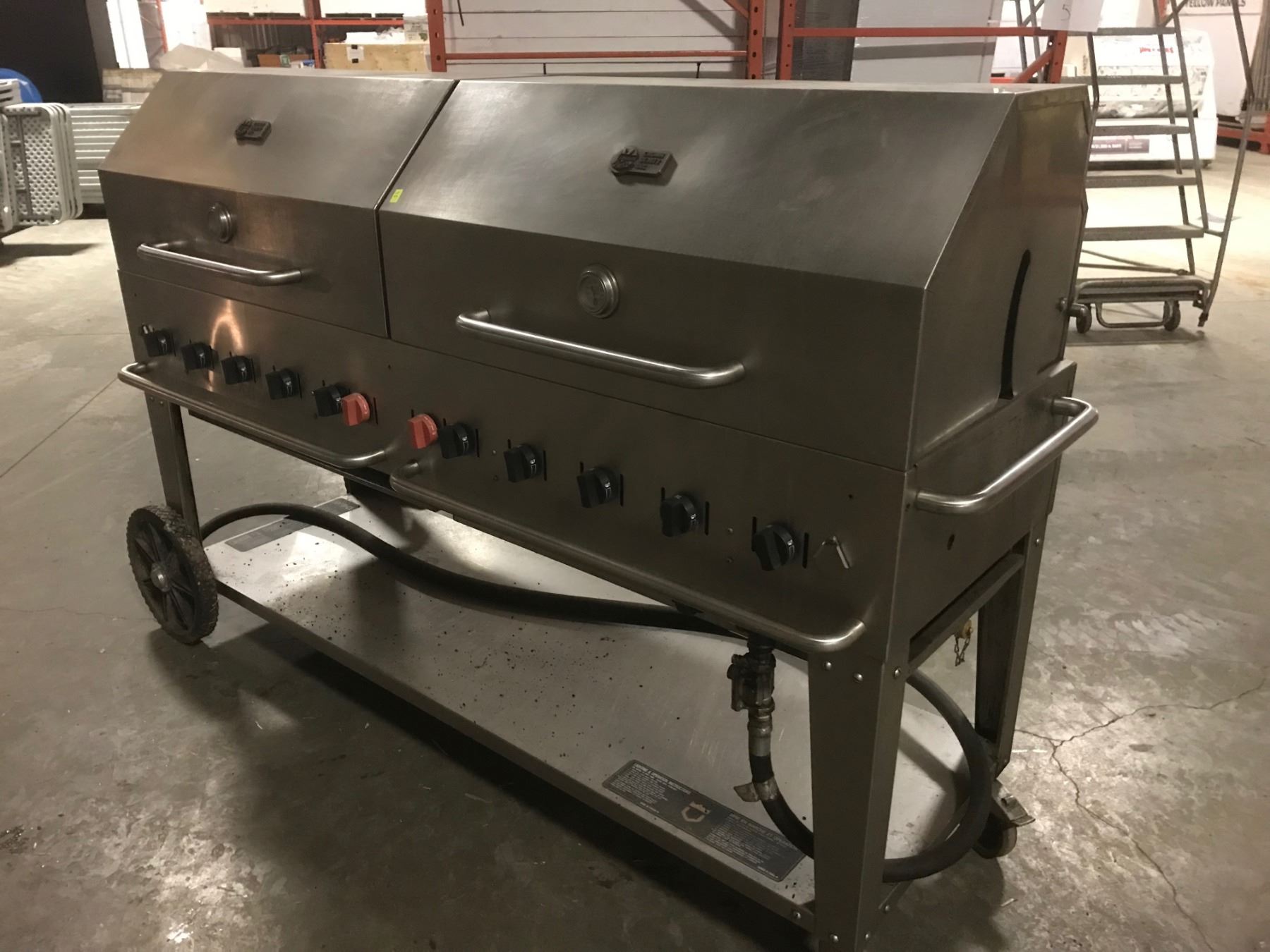 RACETRACK & CASINO BETWEEN 10:00AM TO 4:00PM CROWN VERITY INC STAINLESS-STEEL BBQ DOUBLE GRILL. APPROX 6 FT LONG. NATURAL GAS, MADE IN CANADA, ON CASTORS.