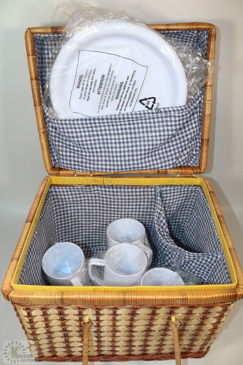 PICNIC BASKET WITH ALL PLATES,CUTLERY AND ETC