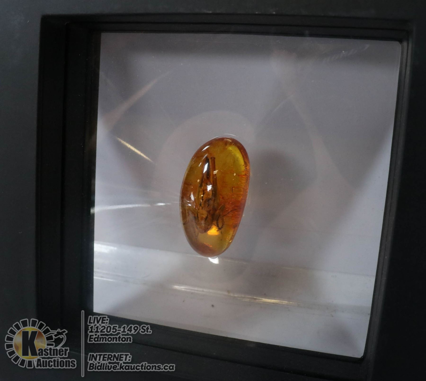 PIECE FOSSIL AMBER WITH INSECT INCLUSION, CRICKET