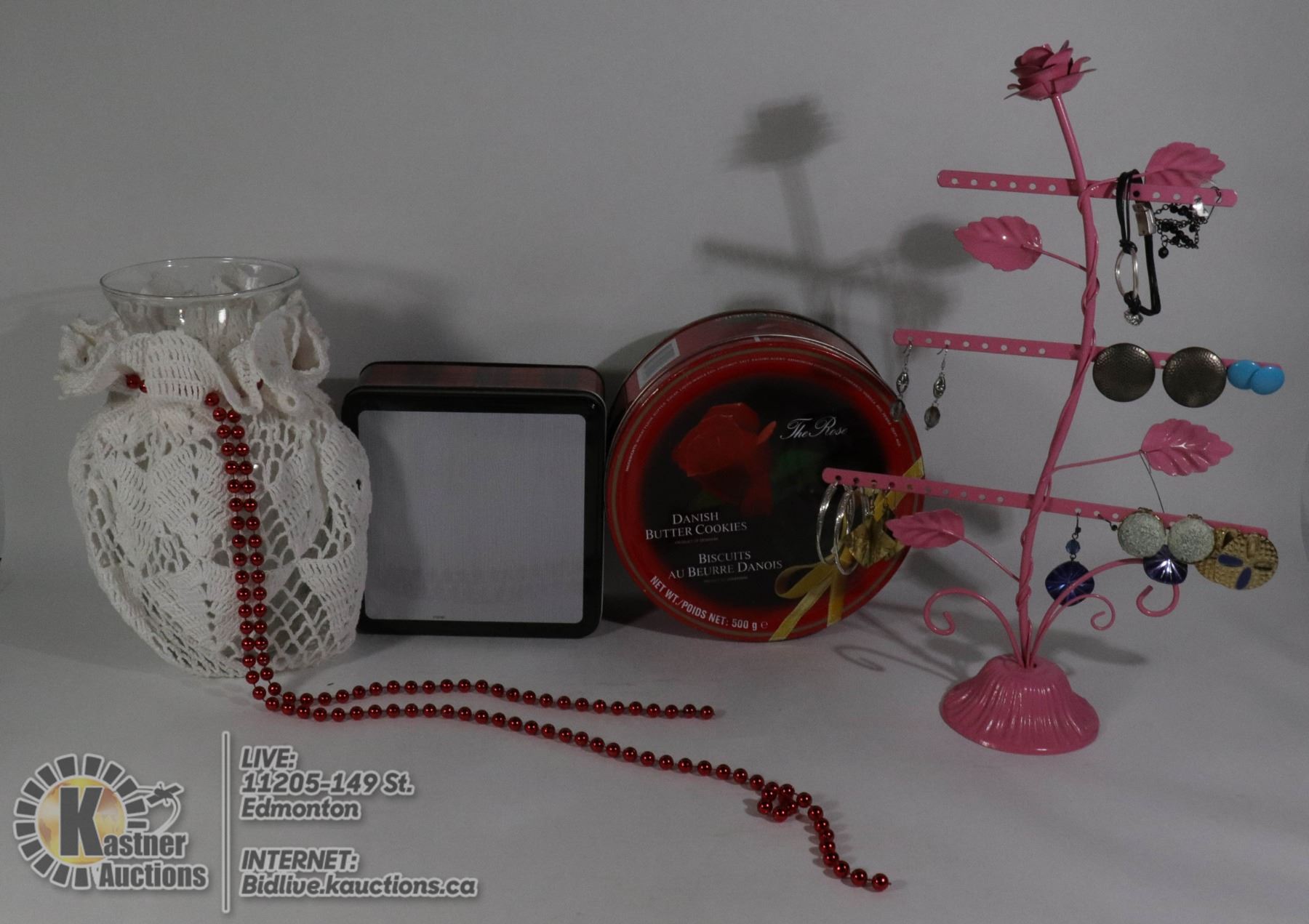 PINK STAND WITH EARRINGS ATTACHED AND COLLECTIBLE