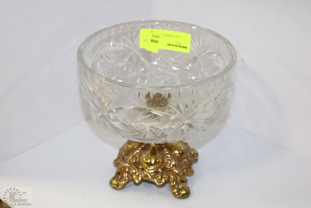 PINWHEEL CRYSTAL BRASS FOOTED BOWL