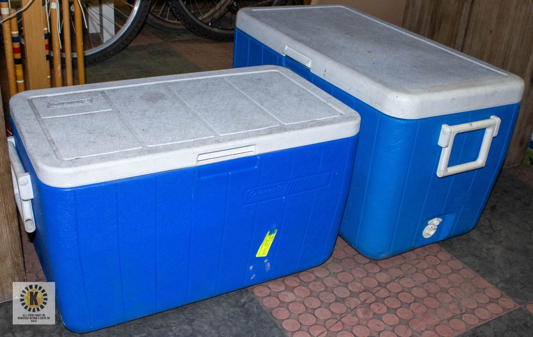 PKG WITH LARGE AND MEDIUM SIZED COLEMAN COOLERS