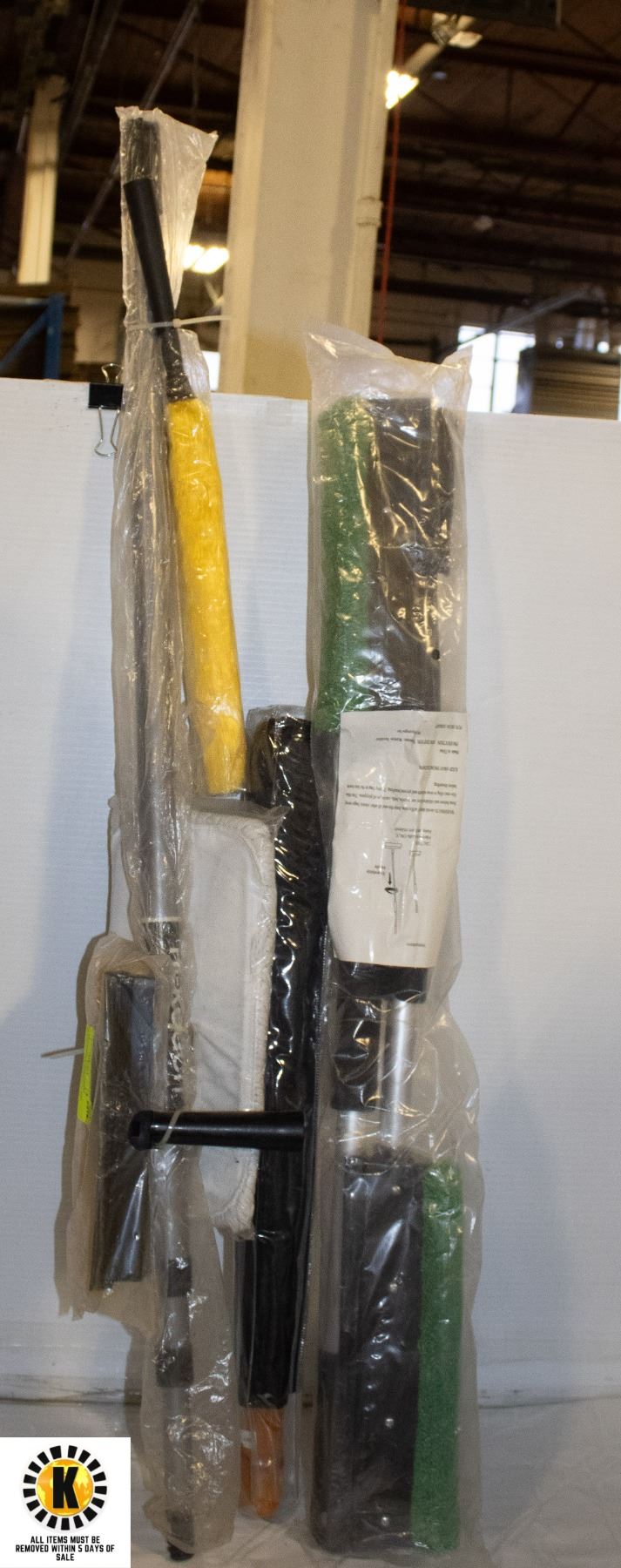 PKG WITH NEW LONG UBRELLA, 2 WINDOW ICE SCRAPERS