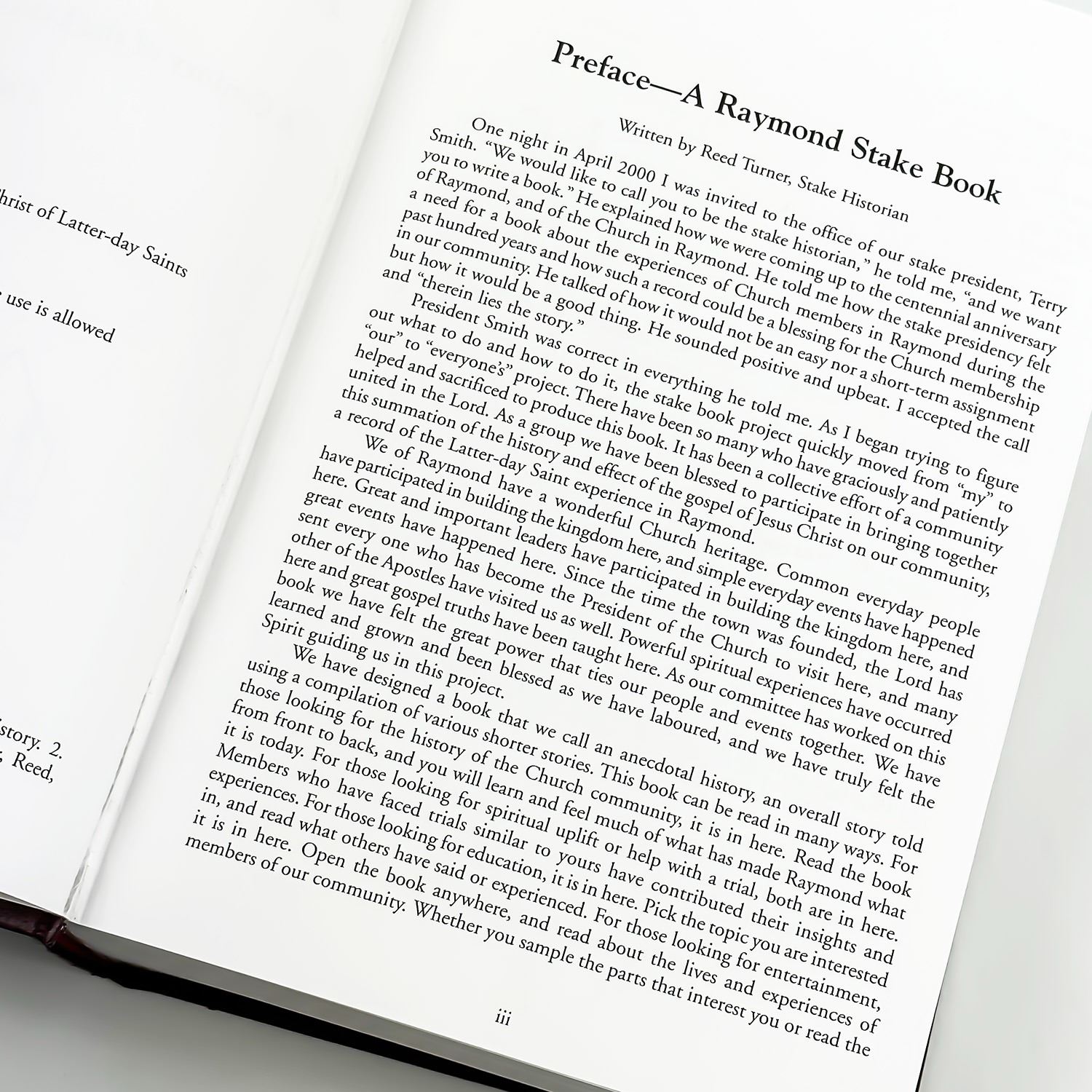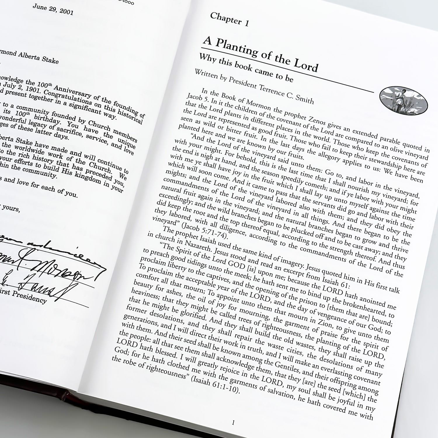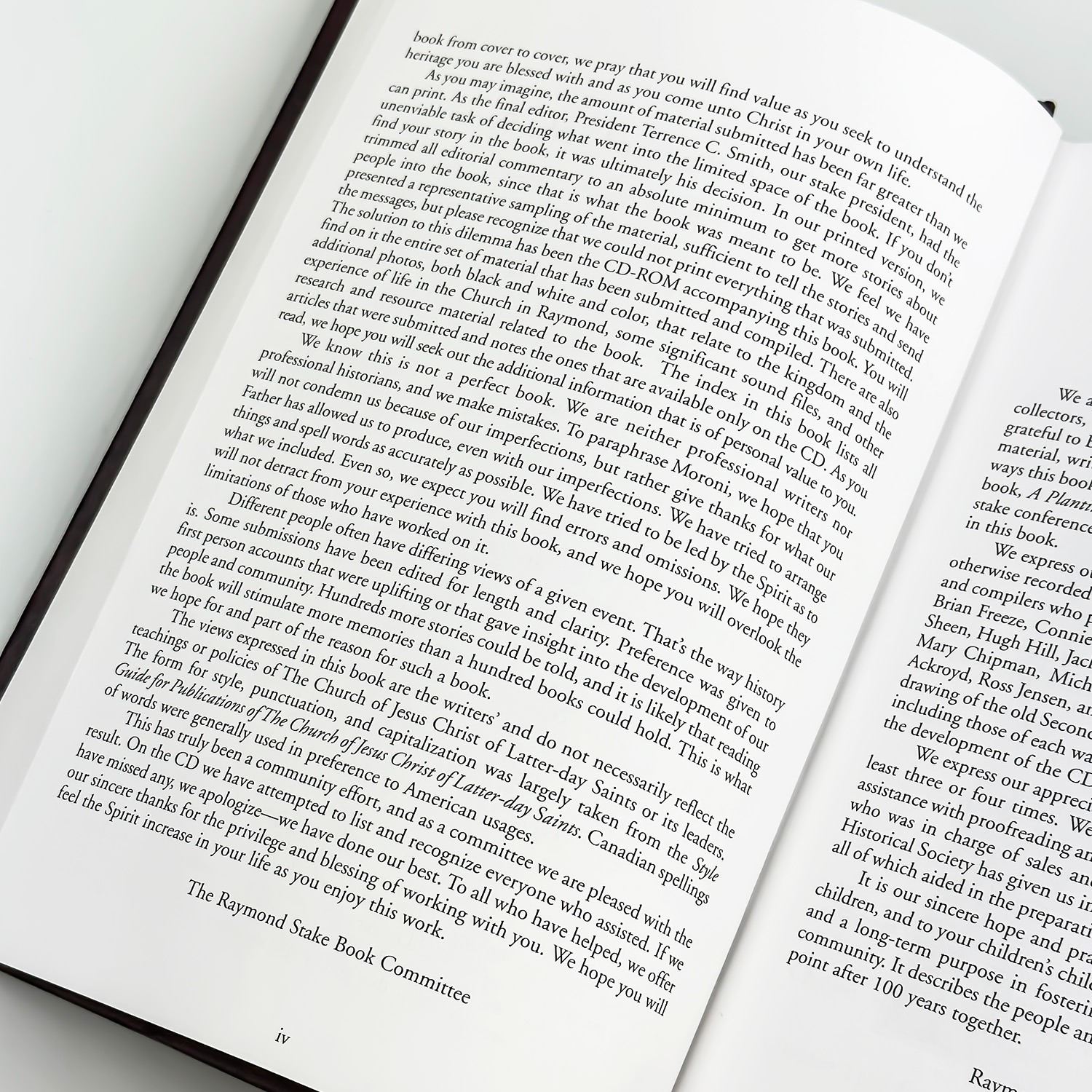 #8980 - ALBERTA HISTORY BOOK - CD IN POUCH IN BACK OF BOOK - A CENTURY OF THE LATTER-DAY SAINTS IN RAYMOND, ALBERTA - 1901-2001. RAYMOND ALBERTA STAKE - THE CHURCH OF JESUS CHRIST OF LATTER-DAY SAINTS. HARDCOVER BOOK - FIRST PRINTING 2001 - 790 PAGES***ITEM(S) LOCATED IN LETHBRIDGE ALBERTA. FREE TRANSPORT TO EDMONTON OFFICE AVAILABLE FOR THIS AUCTION. WORLDWIDE SHIPPING IS AVAILABLE FOR ALL ITEMS