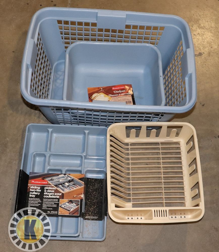 PLASTIC BASKET WITH ASSORTED PLASTIC CONTAINERS